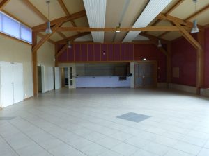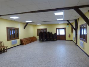 La petite salle des fêtes, située dans le bourg à proximité de l’école, peut contenir environ 50 personnes. Elle est équipée d’une cuisinière électrique, d’un frigo et d’un congélateur et de vaisselle en option pour 30 euros.